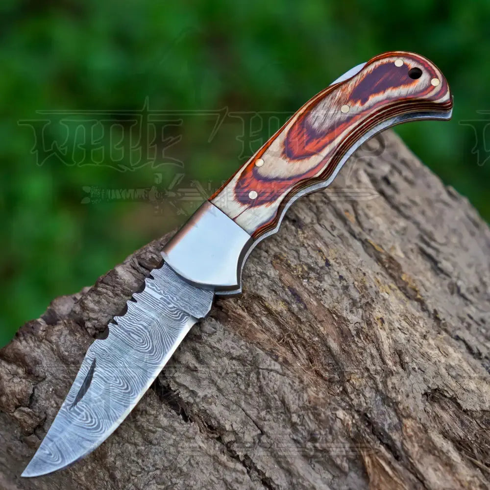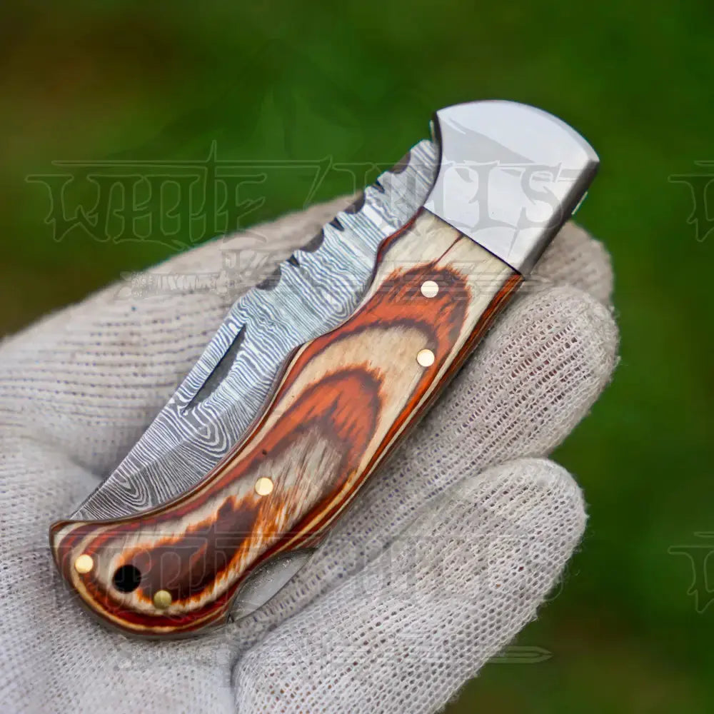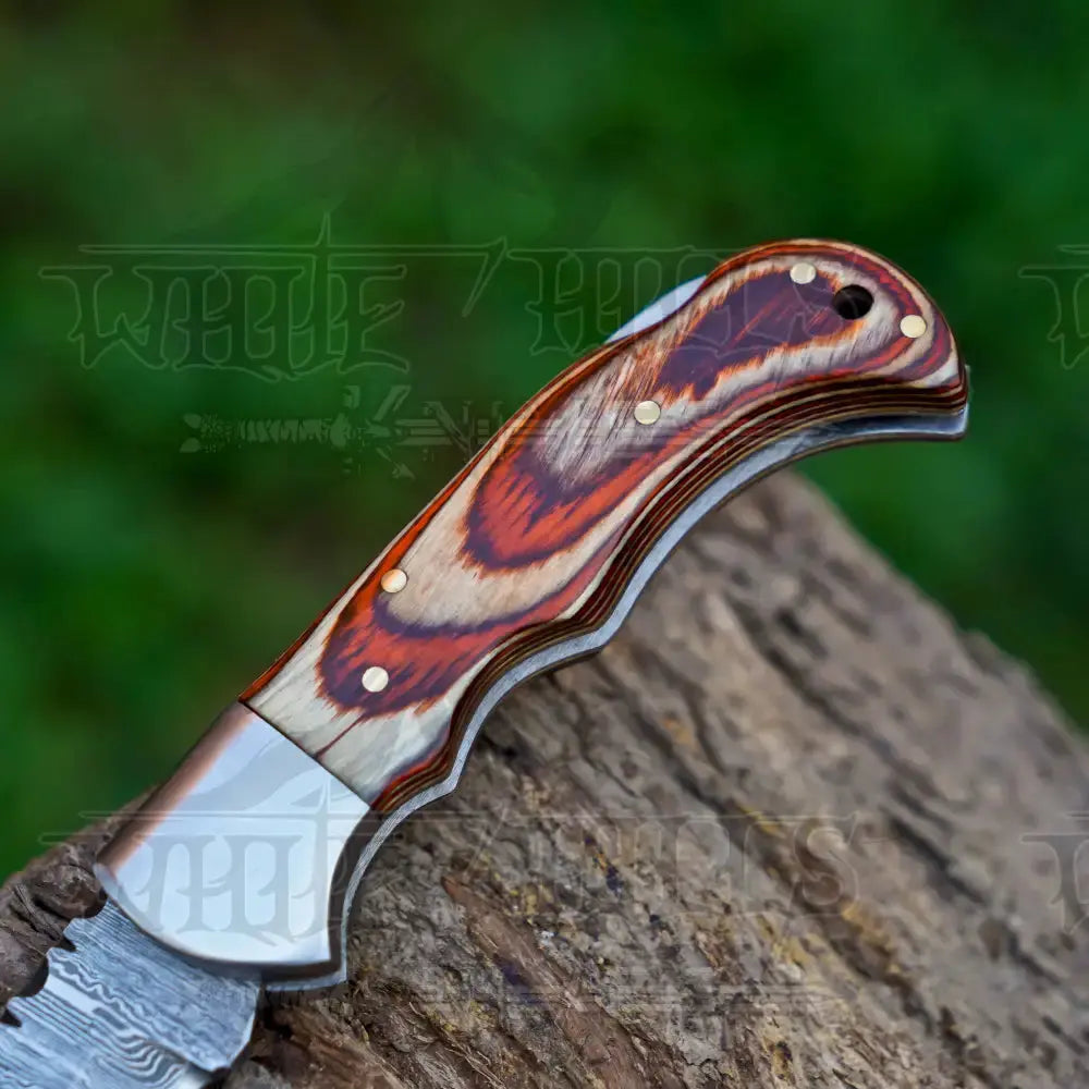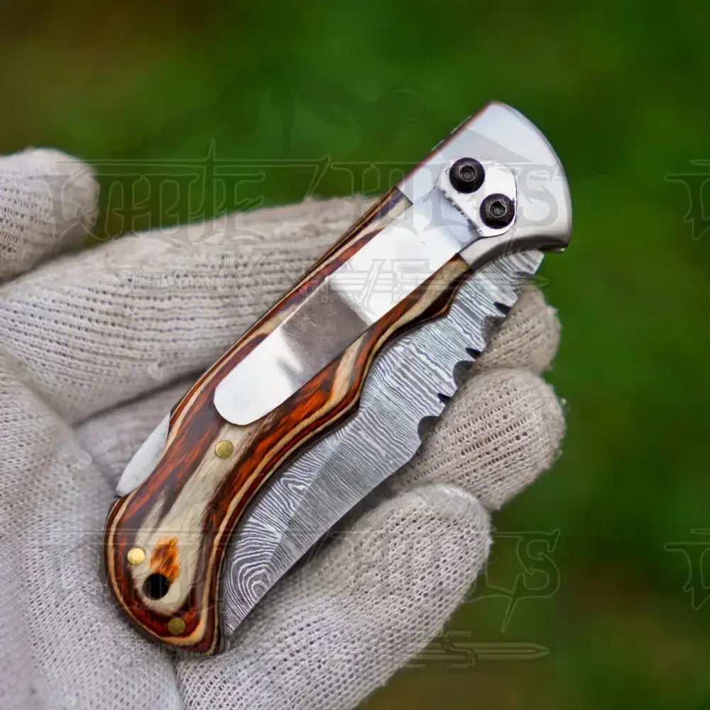 6.5" Handmade Damascus Pocket Knife with Pocket Clip - Pakka Wood Handle WH 5030-CP