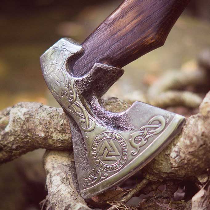 The Valknut Viking Axe was the most used by the Vikings. It’s a very popular product in Viking history. As valknut blog is available on the web which explains the article.This axe is handcrafted specifically for each order. This is a very high-quality product whose head is carbon steel and handles material is ash wood wrapped with leather. This axe is designed with precision, utilizing handcrafted techniques for superior quality. Constructed with carbon steel and ash wood wrapped in leather, the Valknut Viking Axe is a top choice among Viking enthusiasts. Plus, with a comprehensive blog available online, you can deepen your understanding of this iconic armoury.