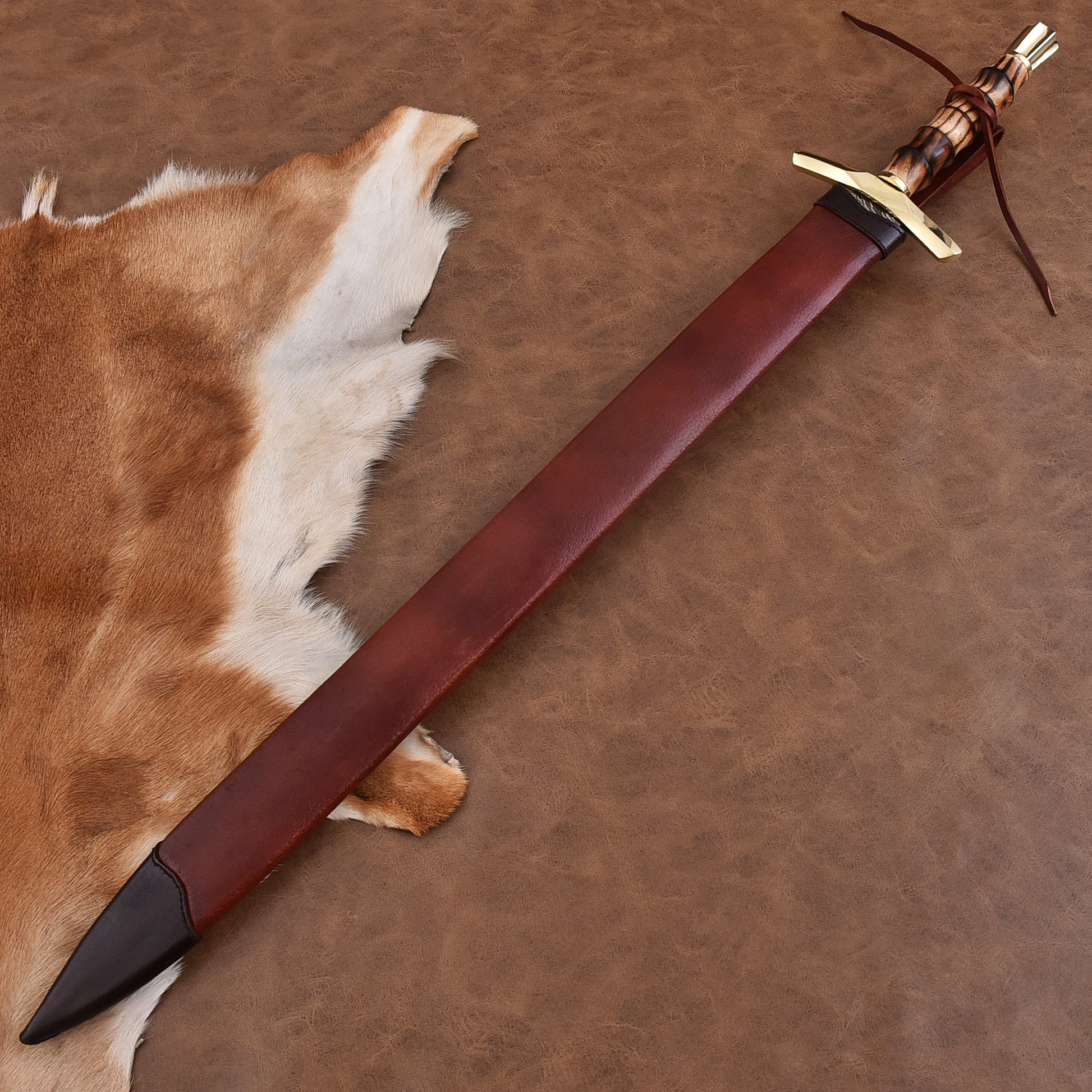 The handle is crafted from premium hardwood, shaped for a secure and comfortable grip, making this sword perfect for collectors, display, cosplay, medieval enthusiasts, or as a standout gift.